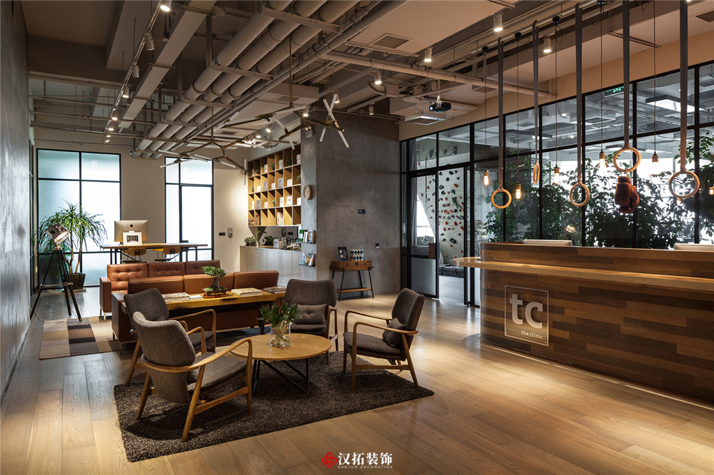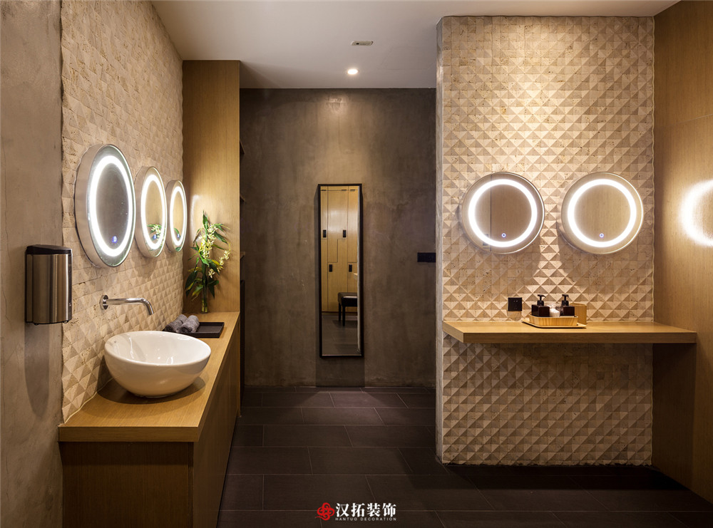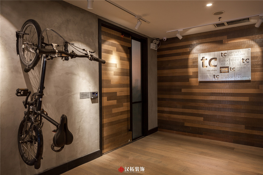 設(shè)計說明:都市生活忙碌,更多的人選擇健身放松來消除生活的疲憊,整個休息區(qū)采用暖色調(diào),溫馨優(yōu)雅,健身區(qū)域采用深色地板,將設(shè)計的元素、色彩、照明、原材料簡化到最少的程度。