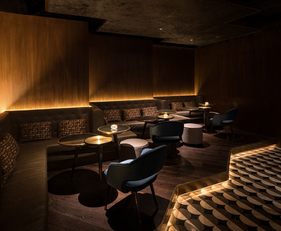 設(shè)計(jì)說明:邁入該酒吧的大門,人們仿佛回到了六十年代紐約的靈魂音樂超級酒吧。空間的中央設(shè)置了一張大理石吧臺(tái),其流線造型為游客帶來美之享受。地面的高差讓所有人,無論在前排還是后方區(qū)域都可以暢通無阻地欣賞舞臺(tái)上的表演,或是沉醉在吧臺(tái)內(nèi)調(diào)酒師的高超技藝之中。
