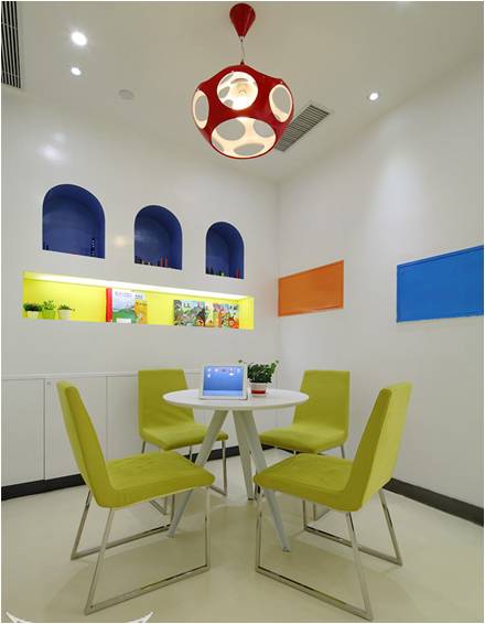 咨詢室靠近前廳及教室,家長(zhǎng)咨詢時(shí)能看到前廳的動(dòng)態(tài)以及校區(qū)內(nèi)孩子的狀態(tài),加上隔墻用透明鋼化玻璃,能夠觀察到全局,給家長(zhǎng)很好的視覺(jué)效果,我們建議不用或少用玻璃,在孩子夠得到的地方使用玻璃時(shí)建議做防爆玻璃。